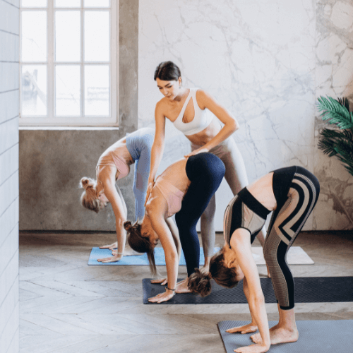 Du lernst, wie du eine Gruppe sicher anleitest, wie du Übungen variierst und wie du selbstbewusst vor Teilnehmerinnen stehst.