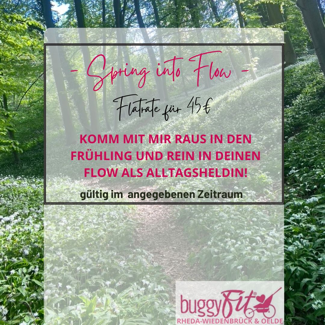 Frühling ist die beste Zeit für deinen Neustart! Sicher Dir jetzt Deinen Platz! Wenn du schon länger darüber nachdenkst, wieder mehr für dich zu tun, dann ist JETZT der richtige Zeitpunkt. STARTE GESUND IN DEN FRÜHLING – FÜR DICH. Mein FRÜHLINGS-GESCHENK an Dich: 4 Wochen Flatrate für 45 € → flexibel an den Terminen teilnehmen → so oft kommen, wie es in deinen Alltag passt Dieses Angebot gibt es nur einmal im Jahr und die Plätze sind begrenzt. Nutz alle meine Kurse vom 13.04.26 - 01.05.26 und komm rein in deinen Flow als Alltagsheldin! Buch JETZT Dein “Spring into Flow” und meld Dich zum Kurs an! LASS UNS GEMEINSAM DEN FRÜHLING BEGRÜSSEN!